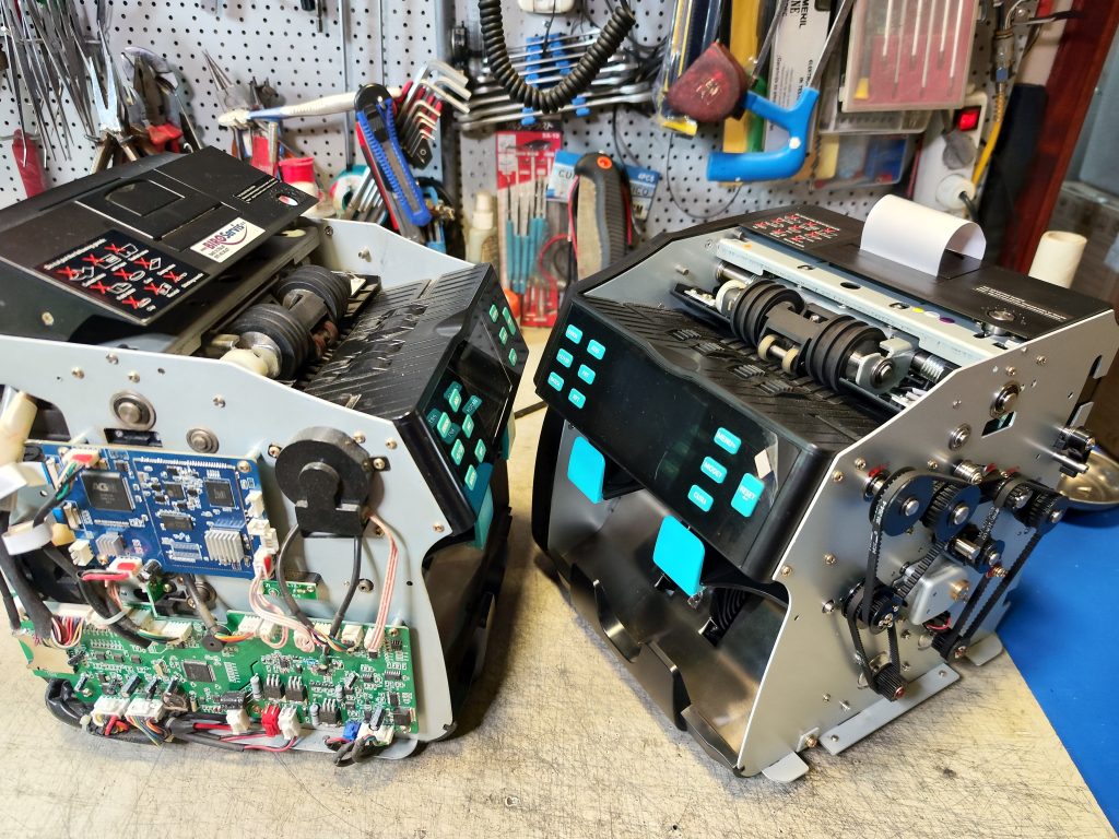 Najčešći kvarovi na brojačima novca je zaprljanost (usled papirne prašine sa samih novčanica) pa je naša preporuka da se oni servisiraju – detaljno čiste svakih 3-6-12 meseci (zavisno od prometa). Servis podrazumeva detaljno ; čišćenje, podmazivanje i podešavanje svih mehaničkih delova mašine, potrebnih za nesmetan i kvalitetan rad. Time se dobija sigurnost i produžava vek brojanja.